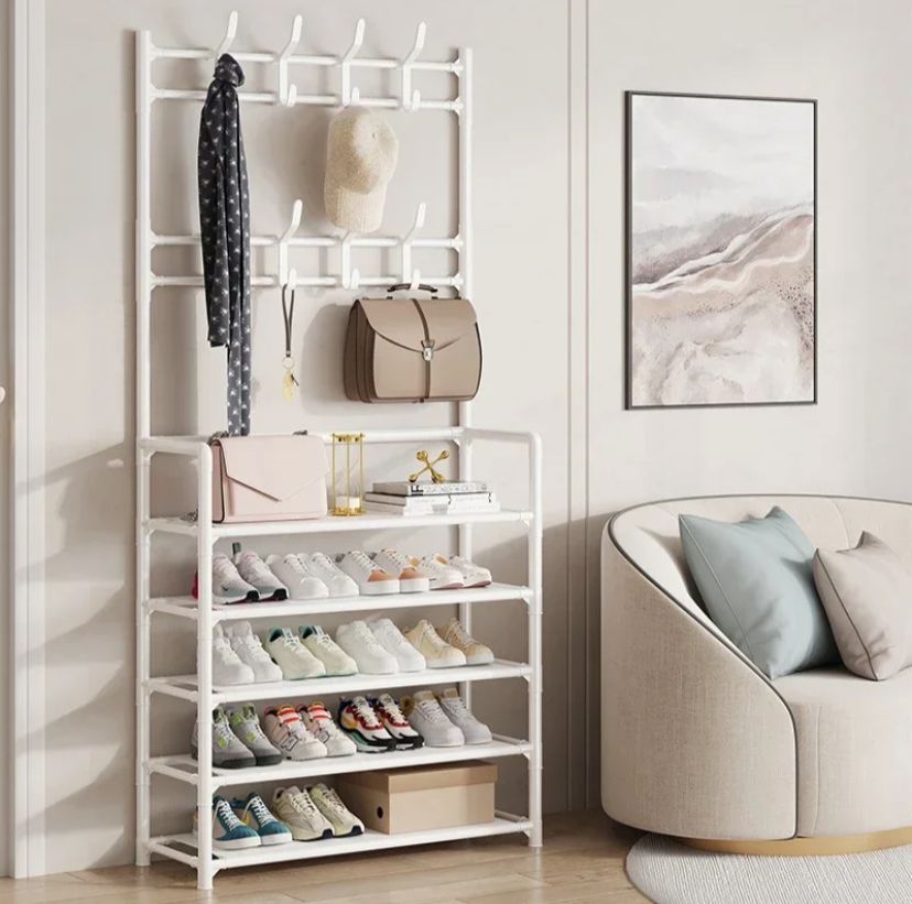 Estante de almacenamiento para zapatos y sombreros, sala de estar fuerte para soporte de carga, organizador de ropa, sombreros, abrigos, zapatos, bolsa de dormitorio
